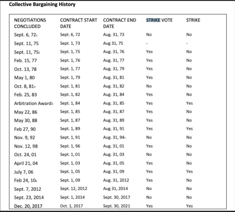 There have only been 4 strikes in the nearly 50 year history but 14 strike votes.
